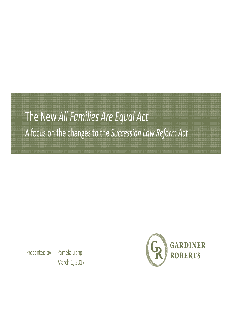 TheNewAllFamiliesAreEqualAct AfocusonthechangestotheSuccessionLawReformActPresentedby: PamelaLiang March1,2017Background Focusonsuccessionrightsofposthumouslyconceivedchildren AssistedHumanReproductionAct(AURA)enacted