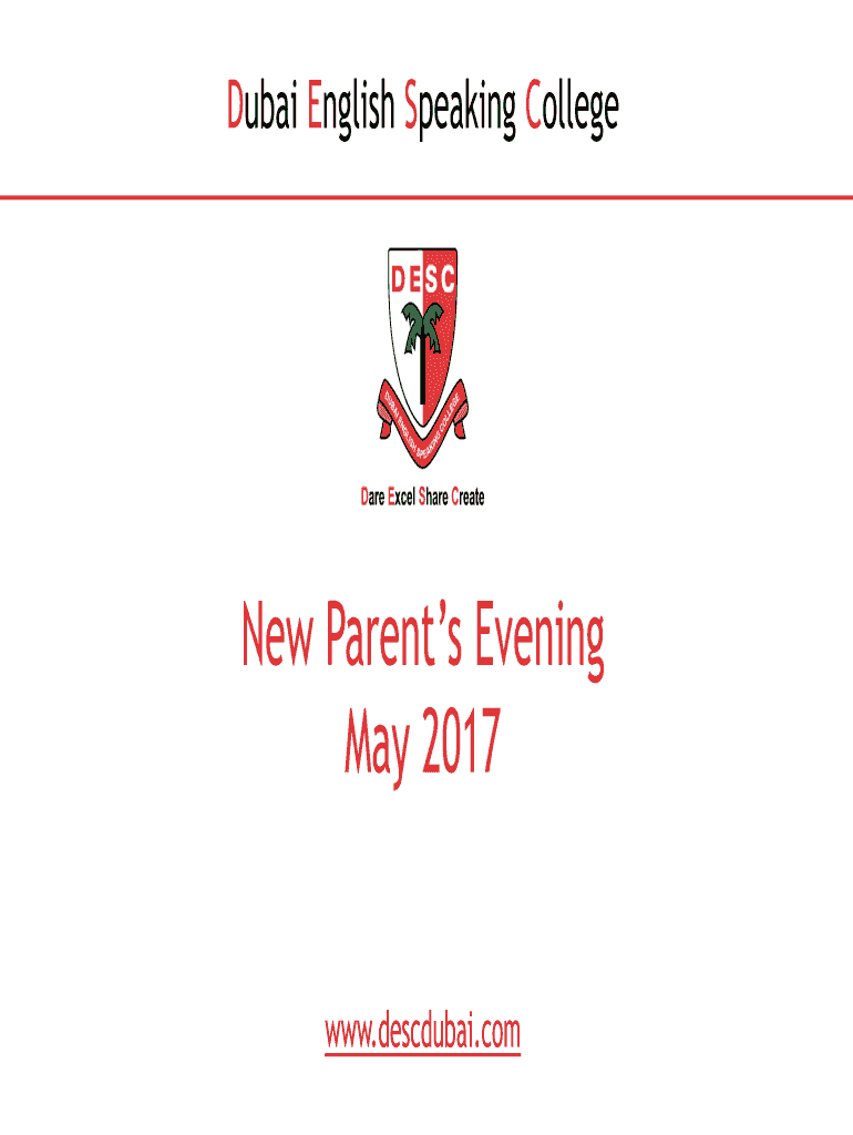 Dubai English-speaking College Parents Evening May 2017 www.descdubai.comThe new Sixth Form Campus Dare Excel Share Create Dare Excel Share Created DISC WebsiteLogging on to the Parent PortalPlease