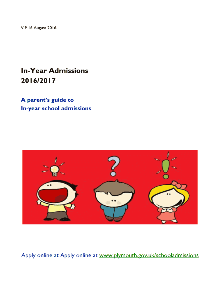 Inhere school admissionsApply online at Apply online at www.plymouth.gov.uk/schooladmissions