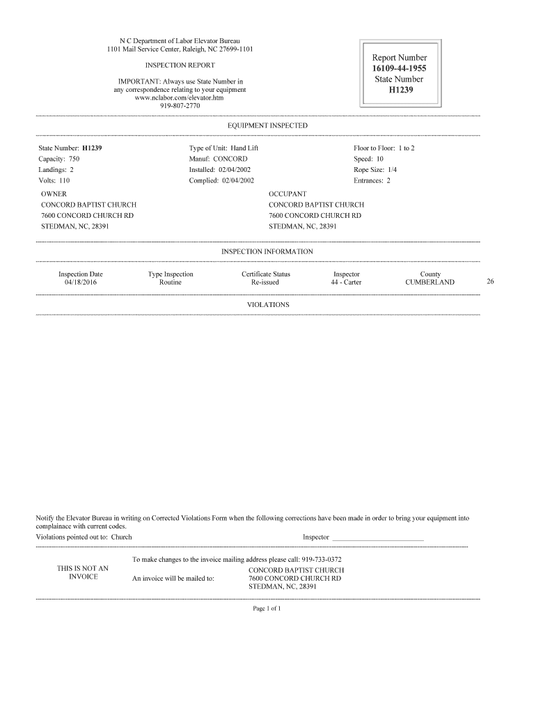 1101 Mail Service Center, Raleigh, NC 276991101Report Number