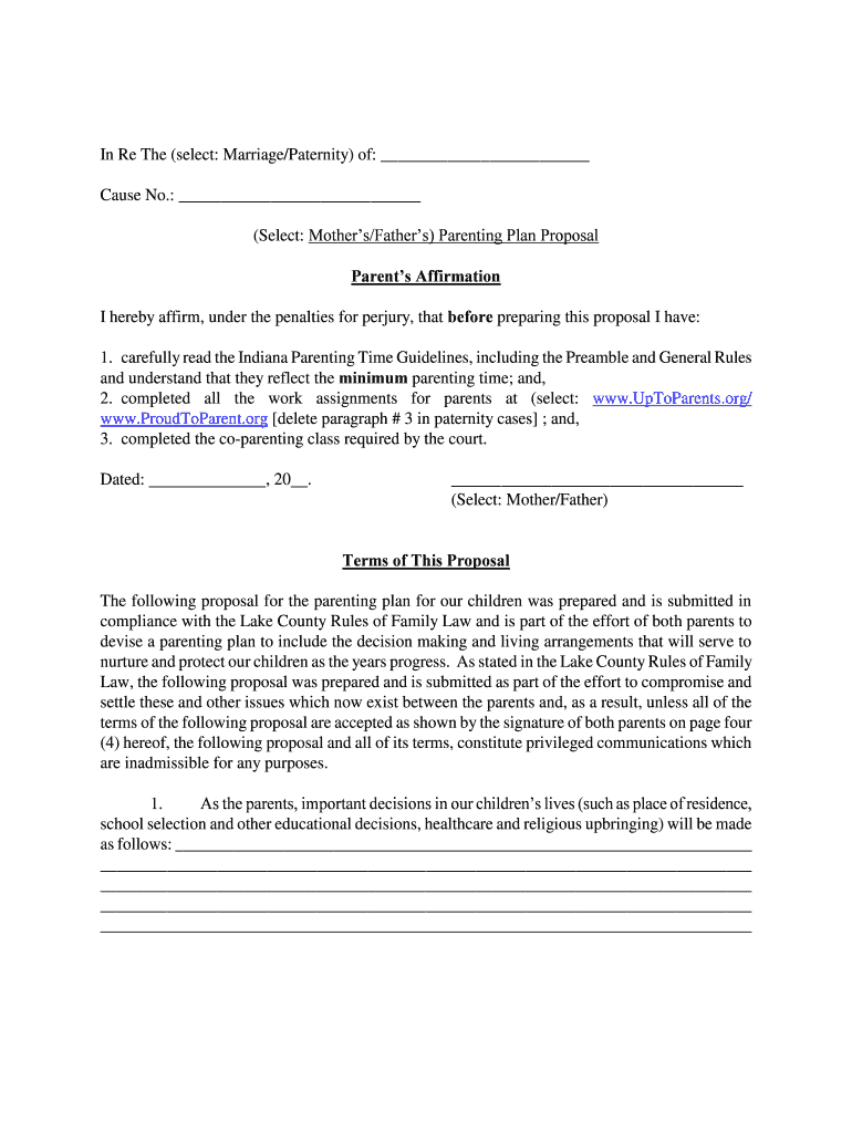 Get the free Indiana Parenting Plan Proposal