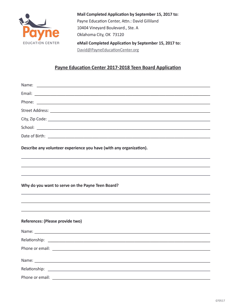 No Child Should Struggle to Eastern BOARD 20172018 APPLICATION