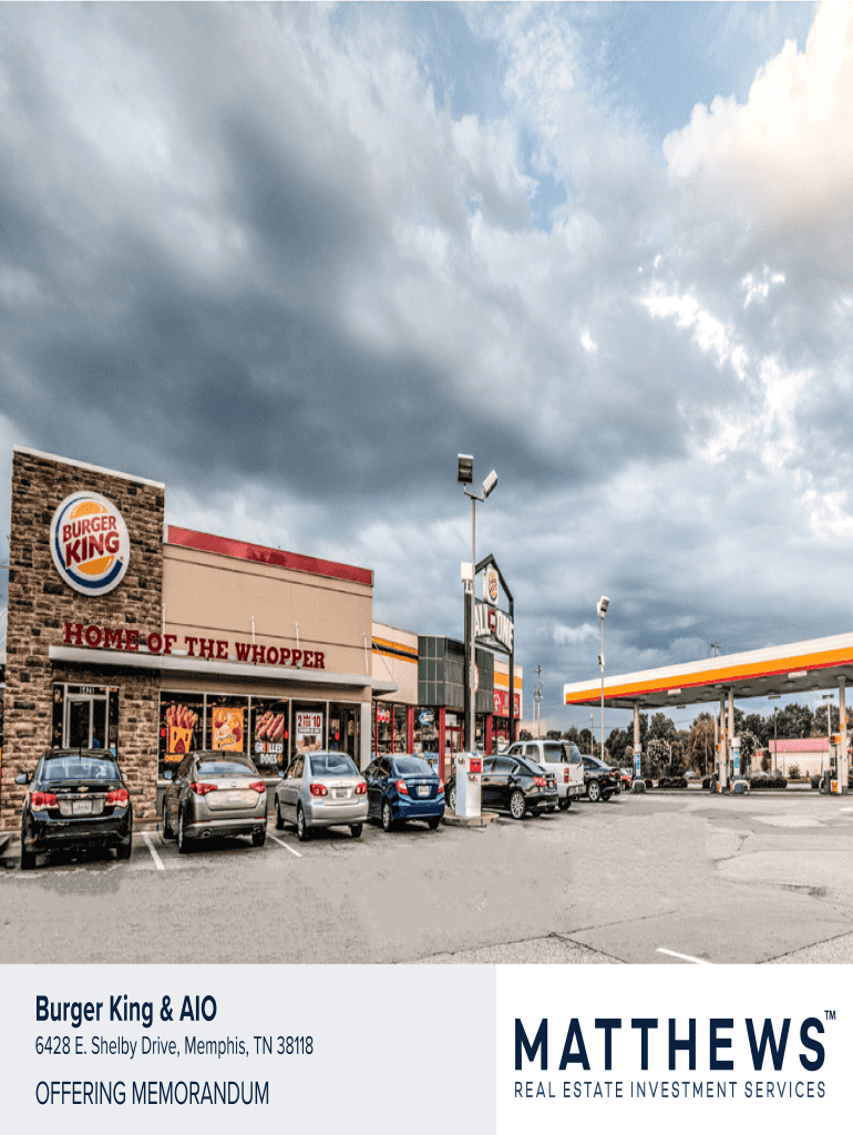 Burger King & AIO6428 E. Shelby Drive, Memphis, TN 38118OFFERING MEMORANDUMCONFIDENTIALITY & DISCLAIMER Statements Marketing Brochure contains select information pertaining to the business and affairs