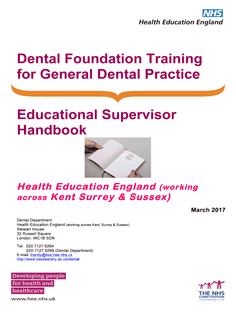 Dental Foundation Training for General Dental Practice Educational Supervisor HandbookHealth Education England (working across Kent Surrey & Sussex) March 2017 Dental Department Health Education England