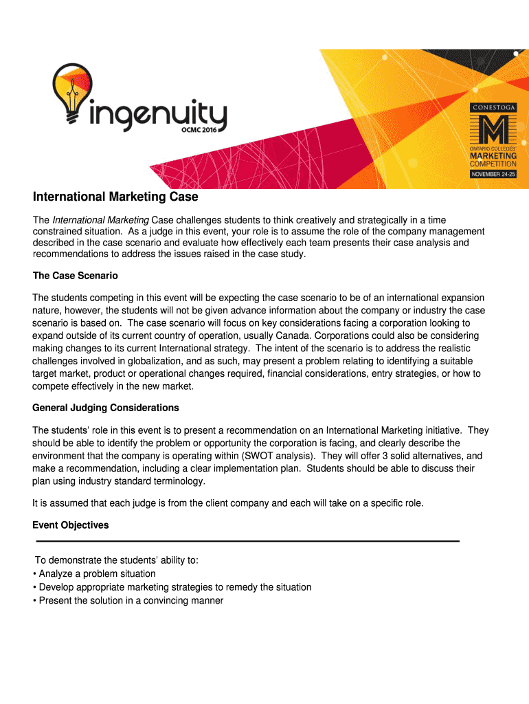 The International Marketing Case challenges students to think creatively and strategically in a time