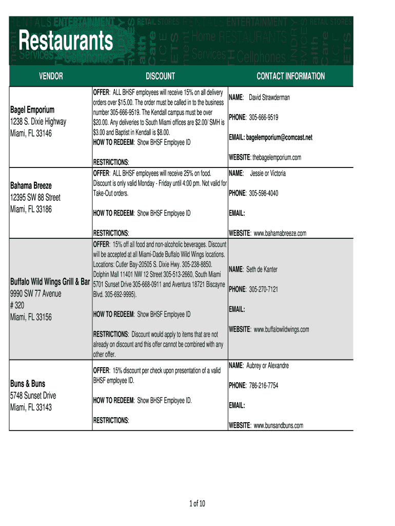 Miami, FL 33186DISCOUNTCONTACT INFORMATIONOFFER: ALL BHF employees will receive 15% on all delivery