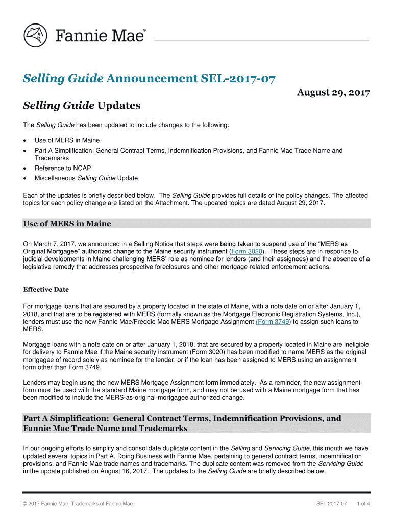 Selling Guide Announcement SEL201707