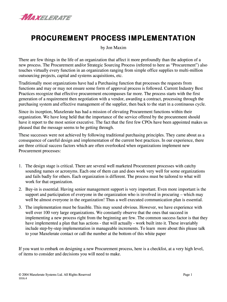 Get, Create, Make and Sign procurement process implementation