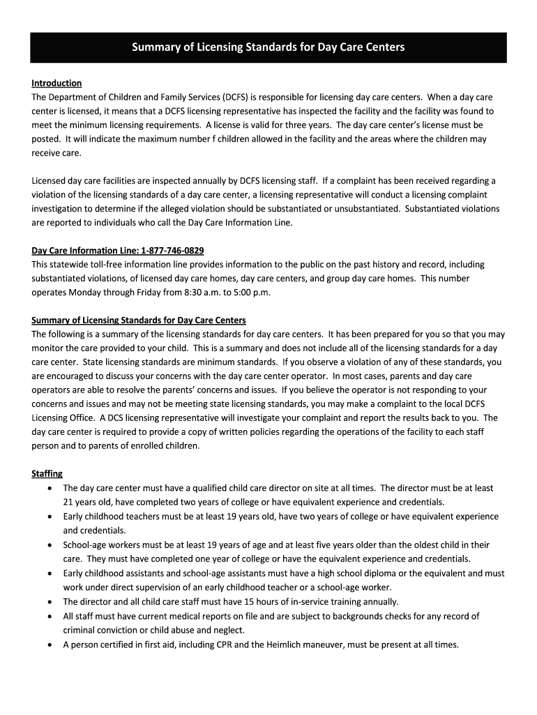The Department of Children and Family Services (CFS) is responsible for licensing day care centers. When a day care