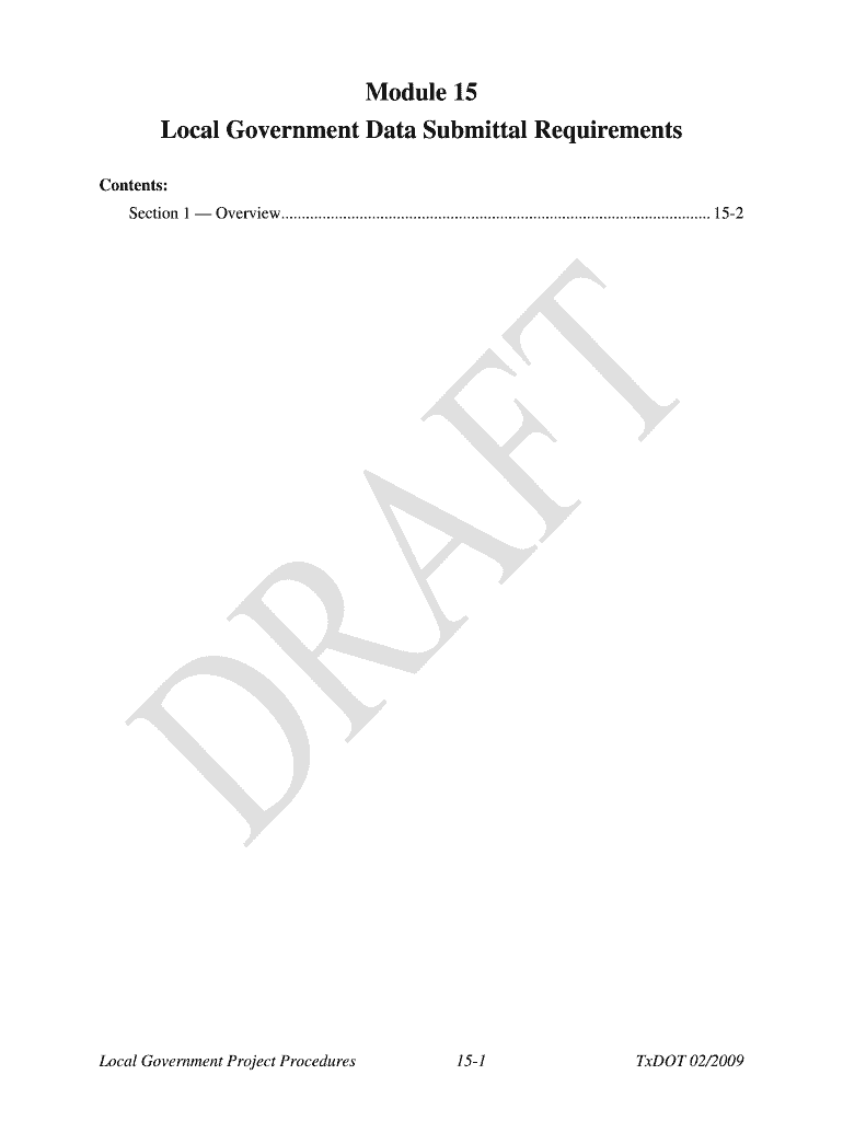 Module 15 Local Government Data Submittal Requirements Contents: Section 1 Overview........................................................................................................ 152Local