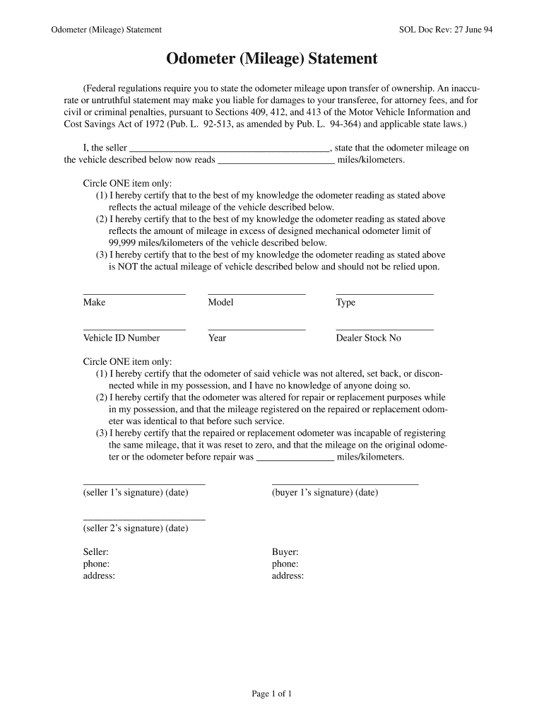 How to fill out the odometer mileage statement