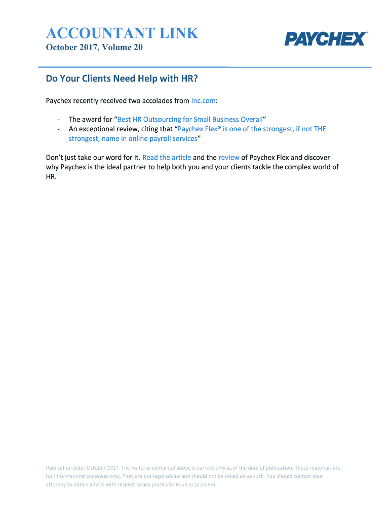 October 2017, Volume 20Do Your Clients Need Help with HR?