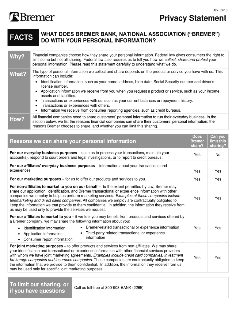 Get the free WHAT DOES BREMER BANK, NATIONAL ASSOCIATION (BREMER)