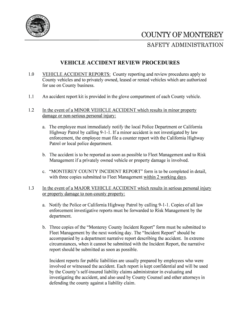 Get the free VEHICLE ACCIDENT REVIEW PROCEDURES