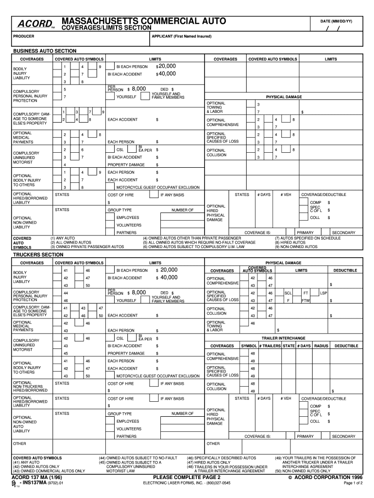 Sample of a Completed Massachusetts Commercial Auto Insurance Application