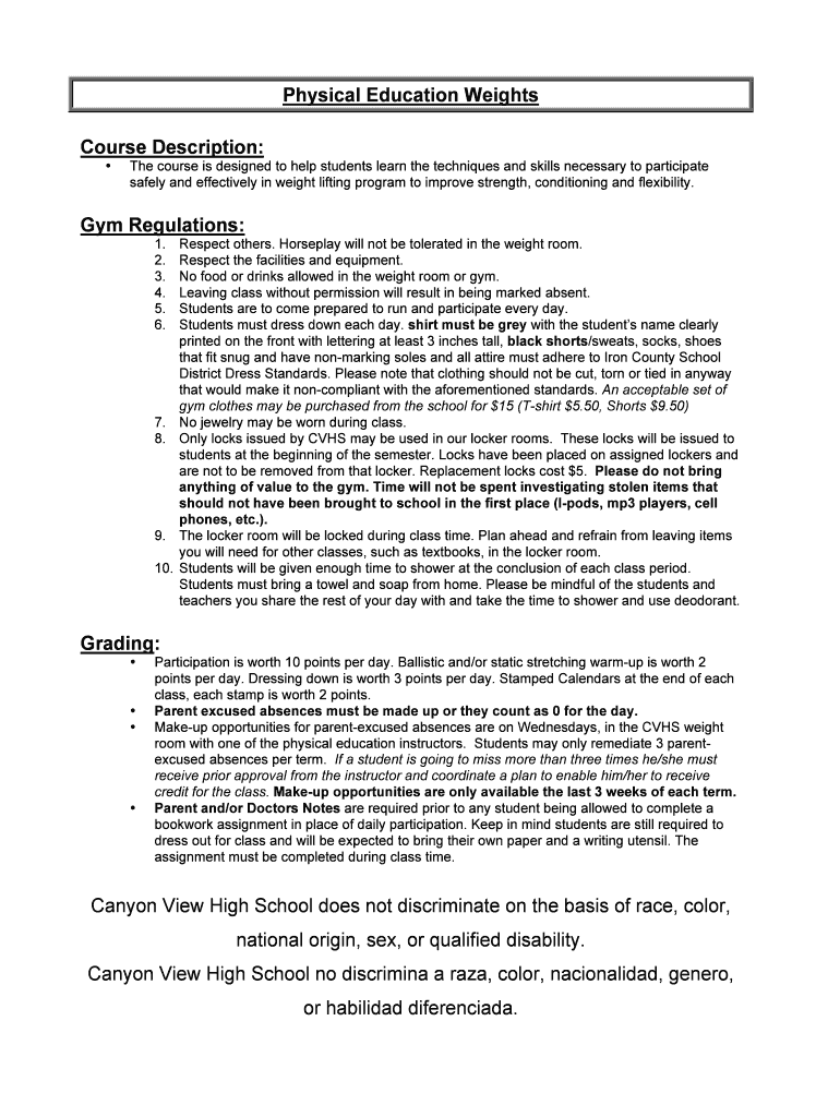 Get the free Physical Education Weights