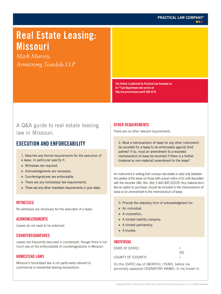 Get the free BReal Estateb Leasing Missouri - Armstrong Teasdale LLP