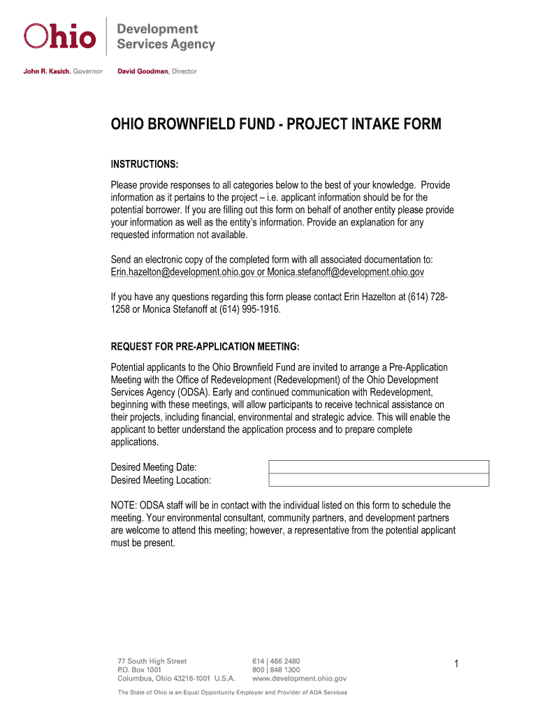 Get the free Project intake form - Ohio Department of Development - development ohio