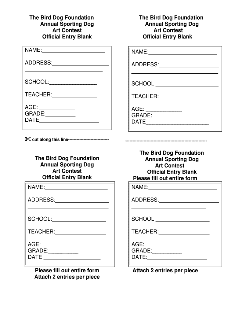 Get the free Bird Dog Foundation Art Contest Entry Form