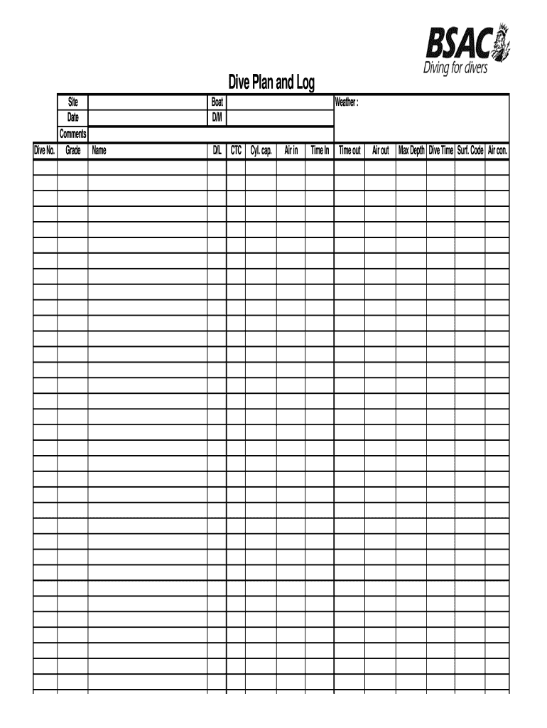 Get, Create, Make and Sign dive plan and log