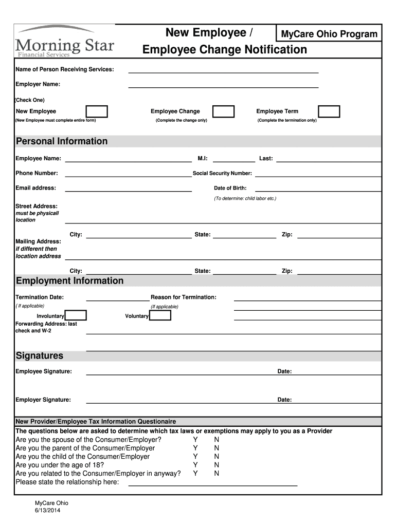 Get the free New Employee Change Notification Form