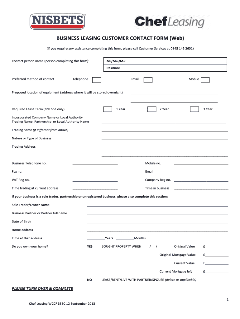 BUSINESS LEASING CUSTOMER CONTACT FORM (Web)