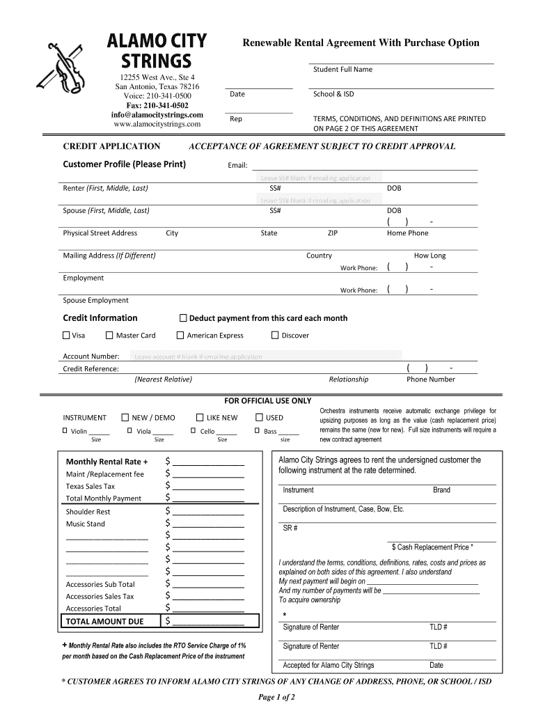 Get the free Renewable Rental Agreement With Purchase Option