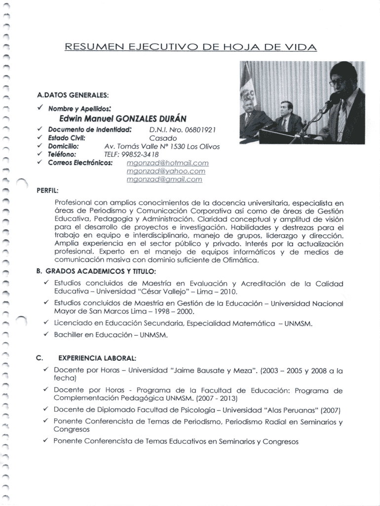 RESUMED EXECUTIVE DE HORA DE VIDA