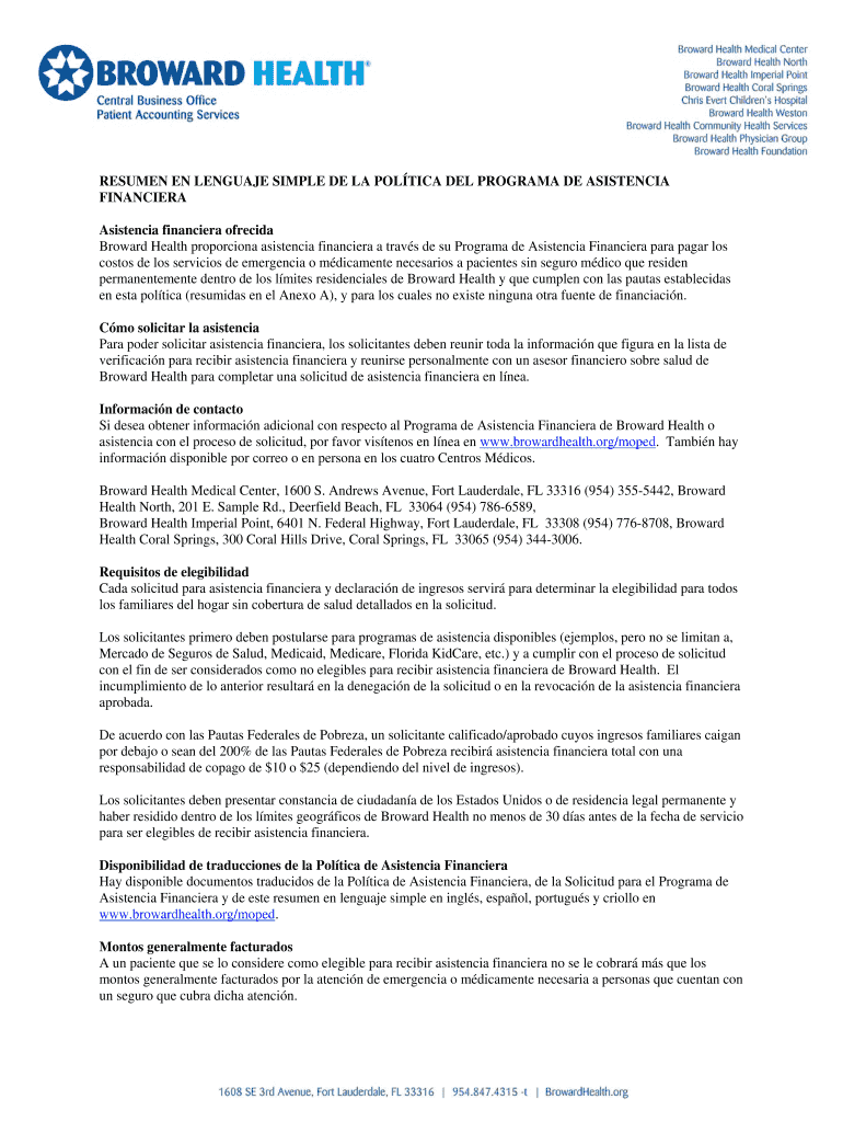 Broward Health proportion asistencia financier a trans de SU Program de Asistencia Financier para pagan Los