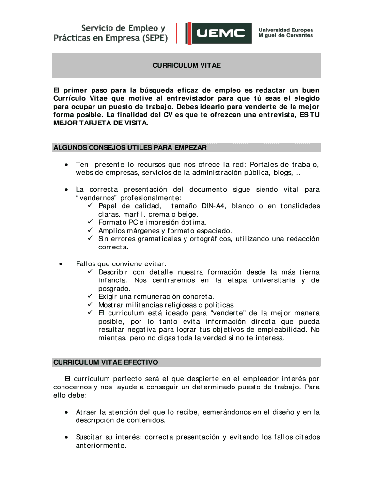 Curricula Vitae Que motive all entrevistador para Que t seas El elegiac