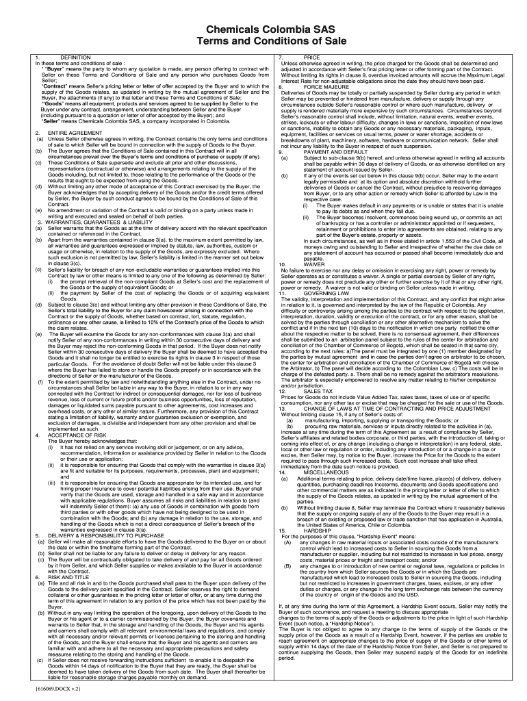Chemicals Colombia SAS Terms and Conditions of Sale 1. DEFINITION In these terms and conditions of sale : Buyer means the party to whom any quotation is made, any person offering to contract with