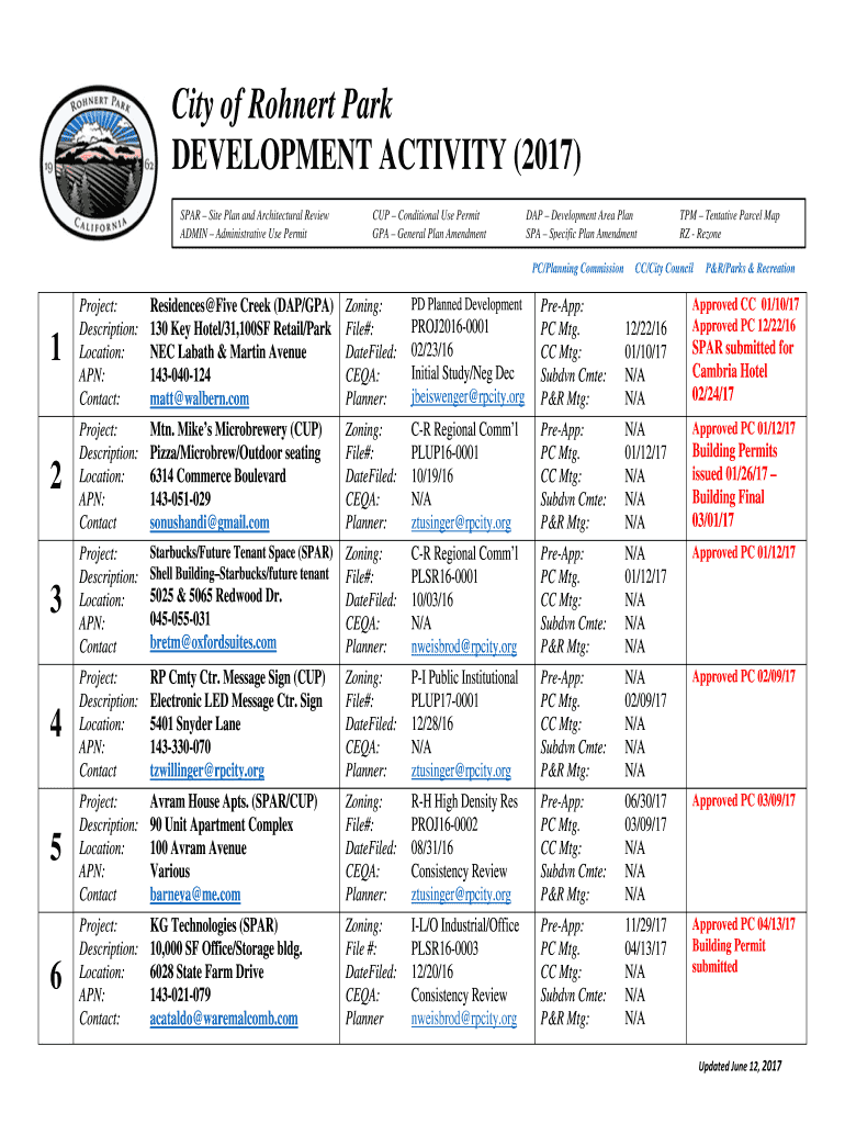 City of Robert Park DEVELOPMENT ACTIVITY (2017) SPAR Site Plan and Architectural Review ADMIN Administrative Use Permit CUP Conditional Use Permit GPA General Plan Amendment Development Area Plan
