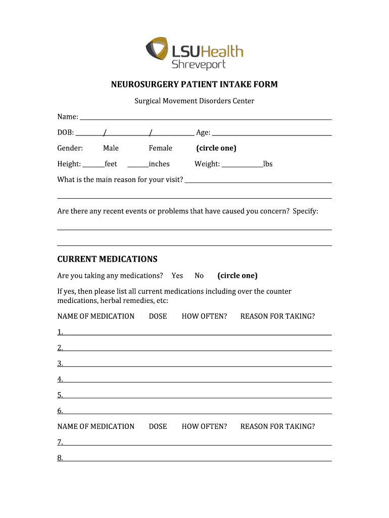 Get the free NEUROSURGERY PATIENT INTAKE FORM