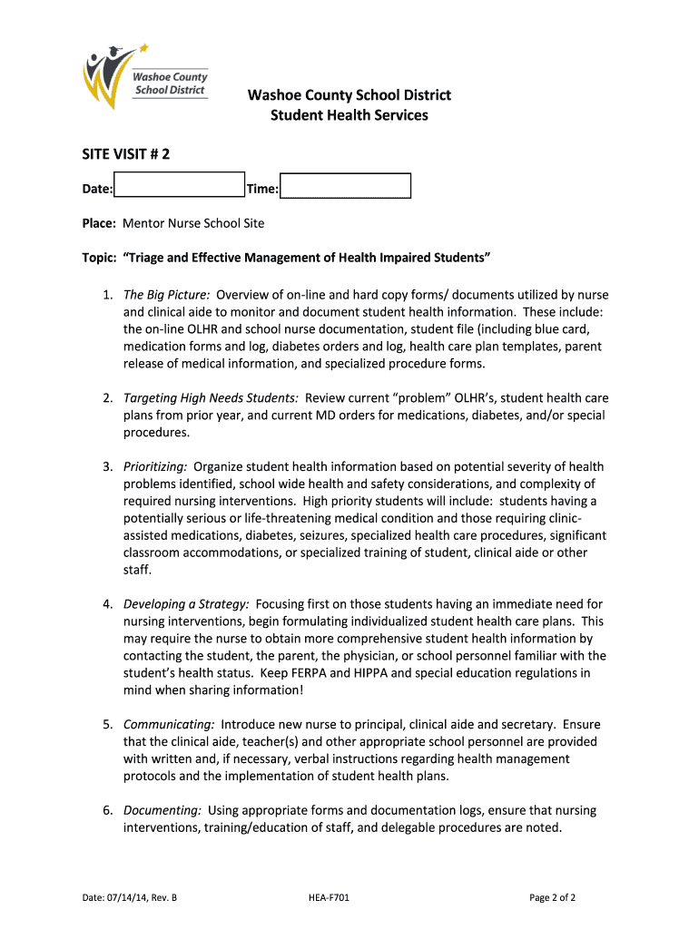 Get the free SCHOOL NURSE MENTOR SITE VISIT GUIDE