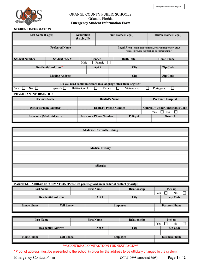 Emergency Information-English is not the form you're looking for?Search for another form here.