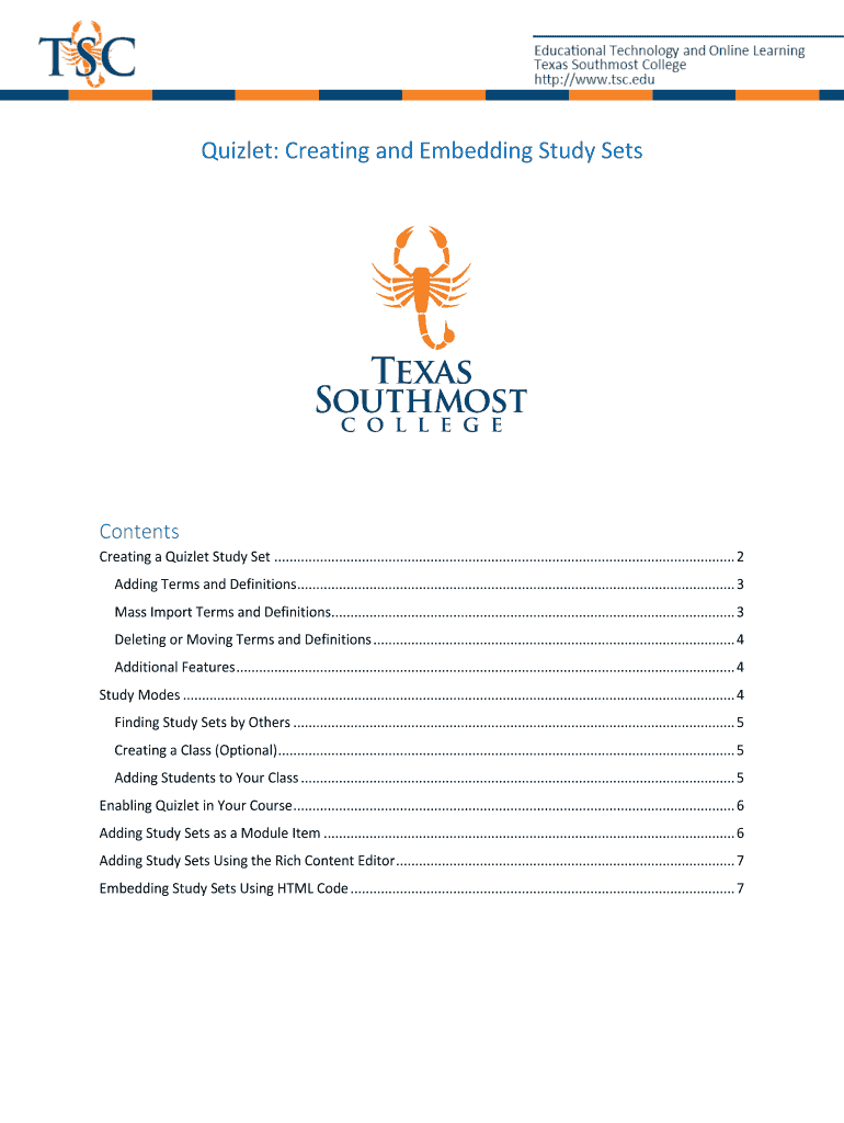 Get the free Quizlet: Creating and Embedding Study Sets