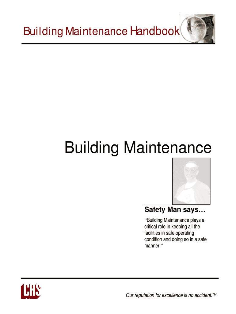 Building Maintenance HandbookBuilding MaintenanceSafety Man says Building Maintenance plays a critical role in keeping all the facilities in safe operating condition and doing so safely. Our reputation