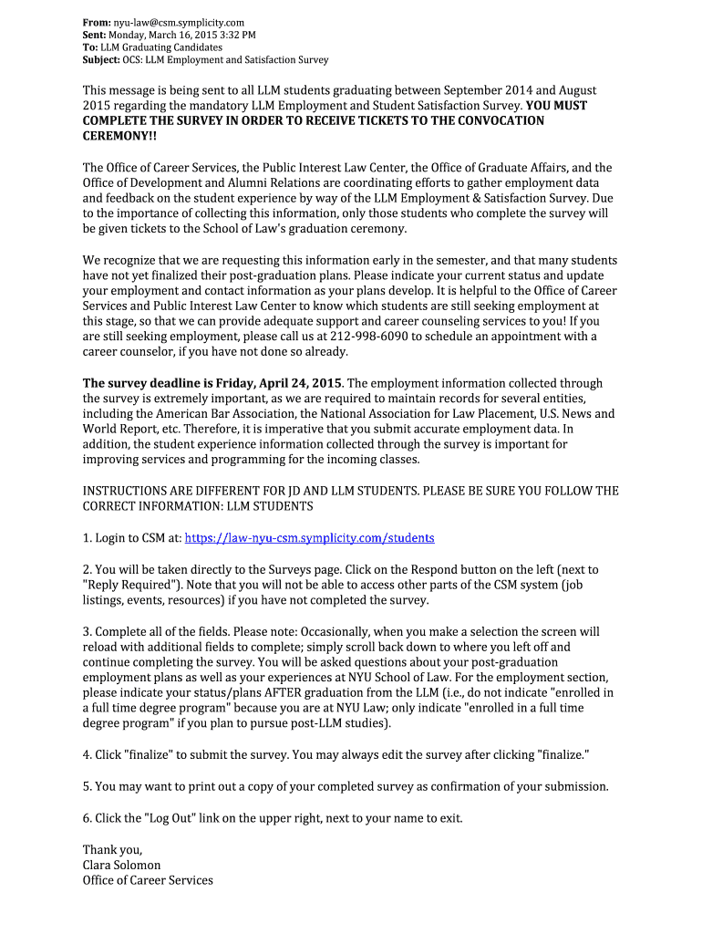 Subject: OCS: ELM Employment and Satisfaction Surveys message is being sent to all ELM students graduating