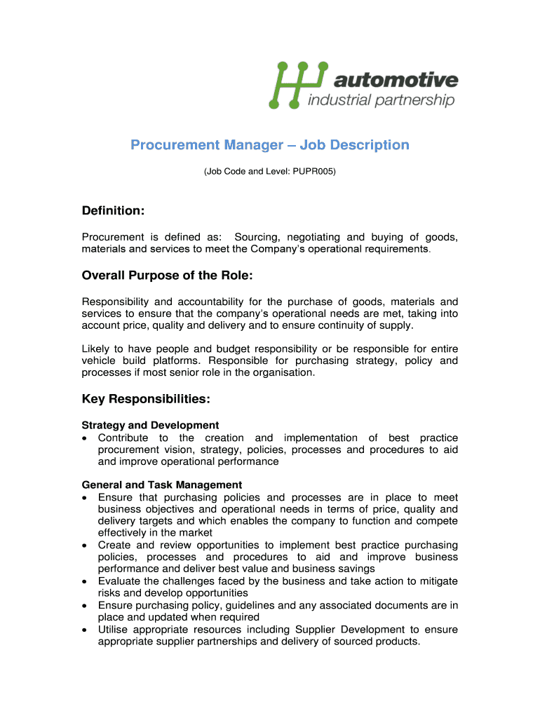 Fill out your procurement manager job description online with pdfFiller!