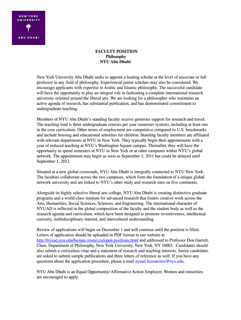 NYU Abu Cabinet York University Abu Dhabi seeks to appoint a leading scholar at the level of associate or full
