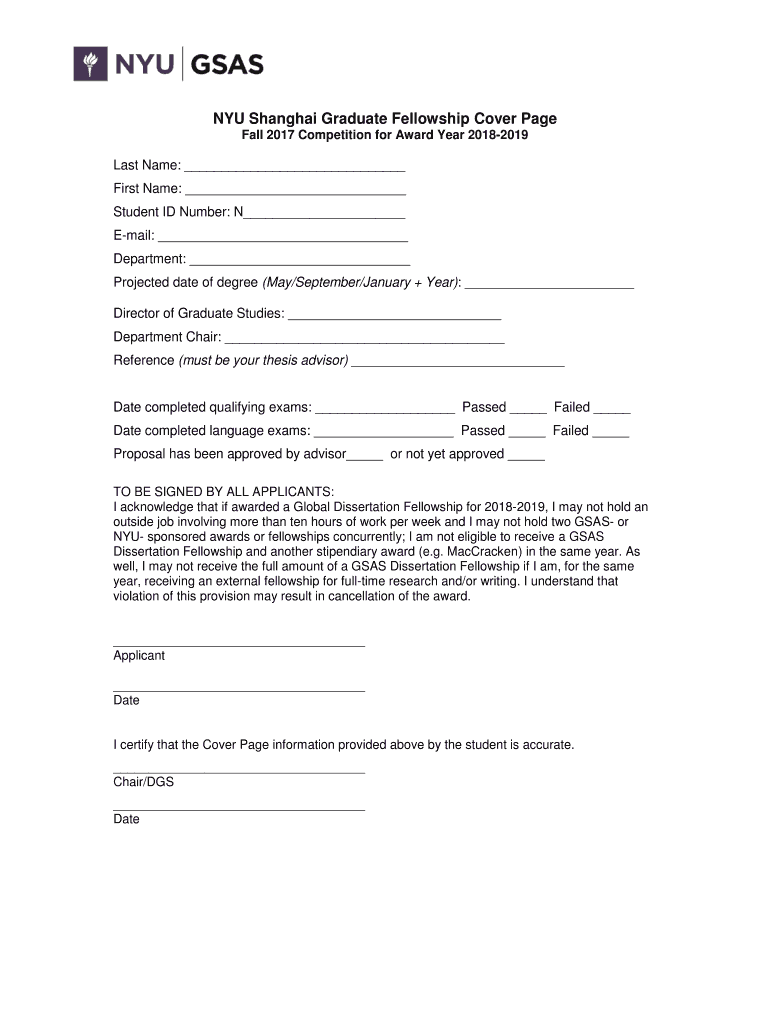 Get the free NYU Shanghai Graduate Fellowship Cover Page