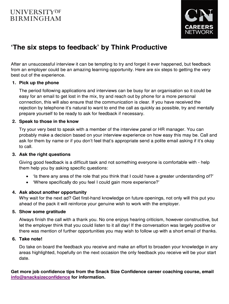 Get the free The six steps to feedback by Think Productive