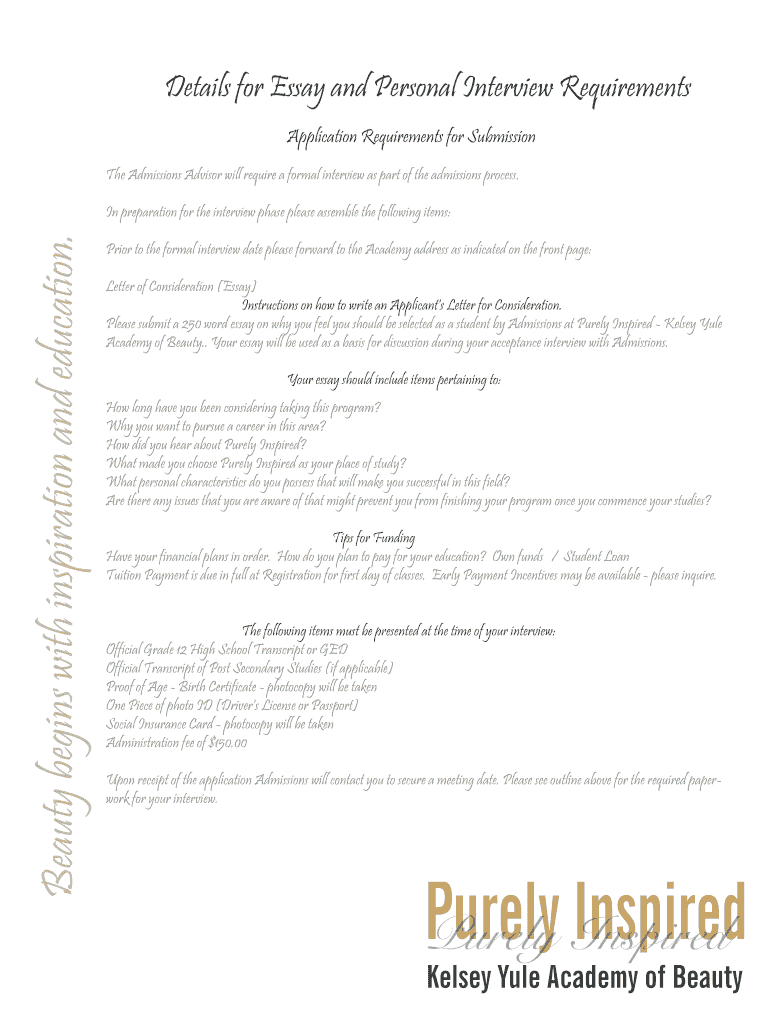Get the free Details for Essay and Personal Interview Requirements