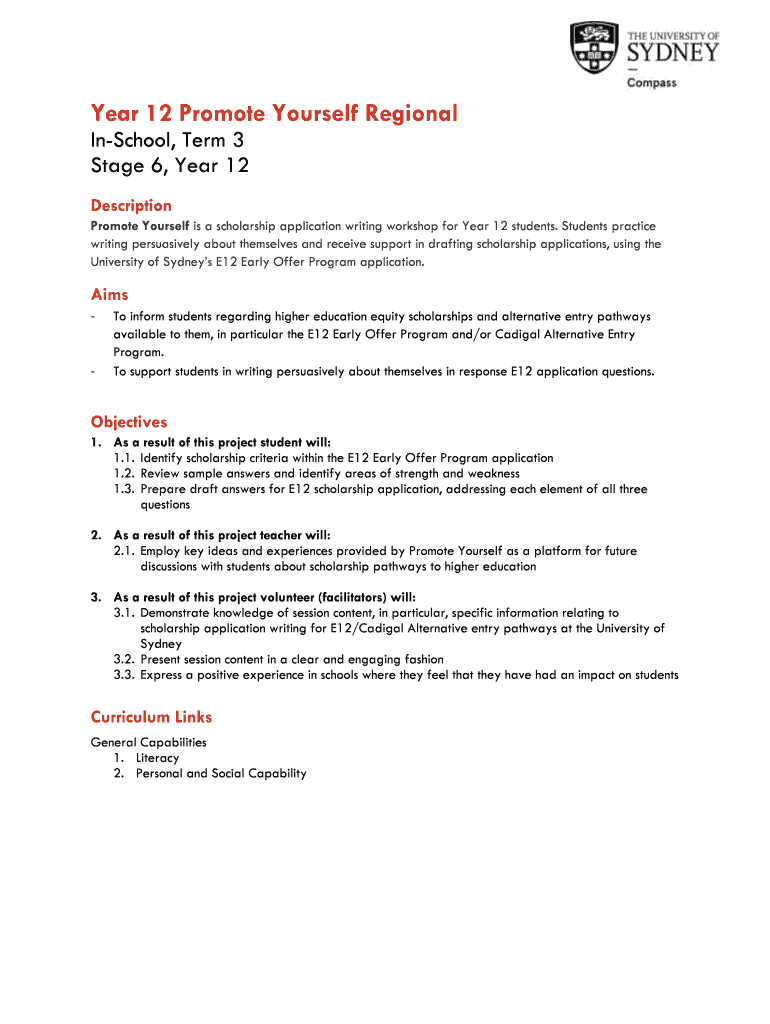 Fill out your year 12 promote yourself online with pdfFiller!