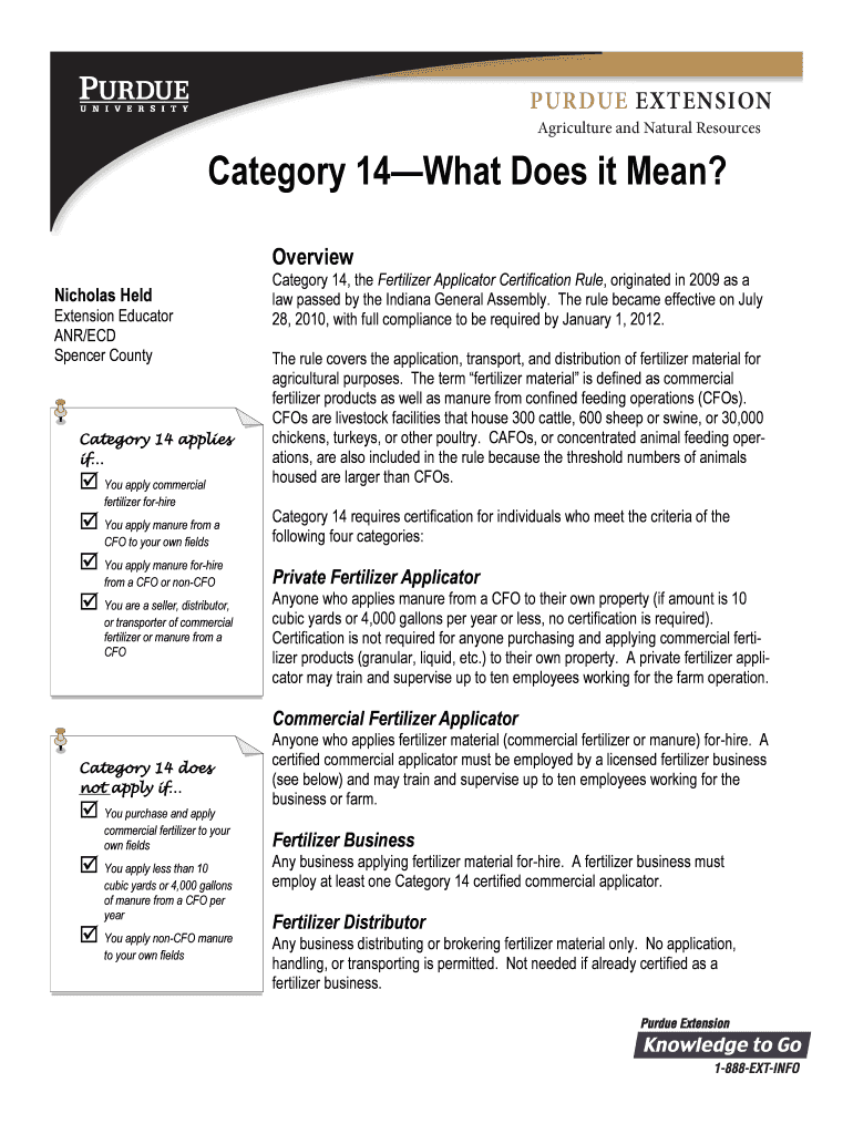 fertilizer forhireCategory 14, the Fertilizer Applicator Certification