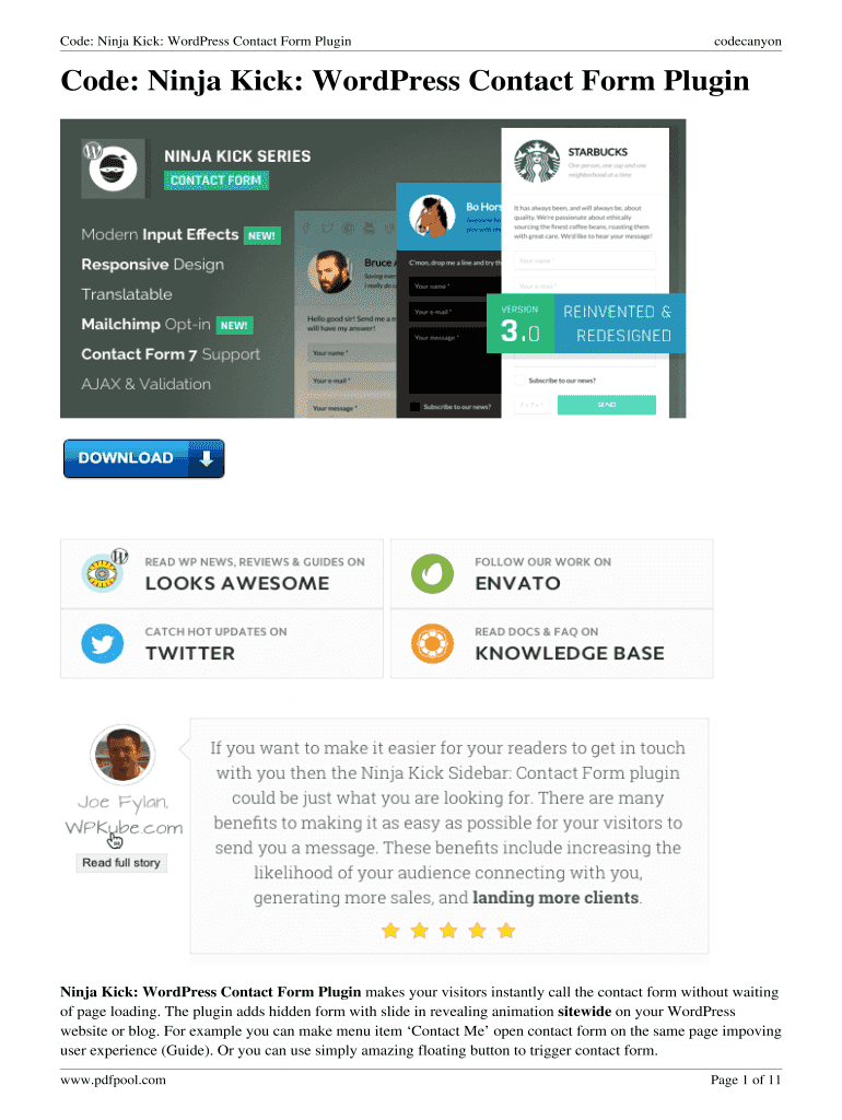 Edit ninja kick wordpress contact. Add and replace text, insert new objects, rearrange pages, add watermarks and page numbers, and more. Click Done when you are finished editing and go to the Documents tab to merge, split, lock or unlock the file.