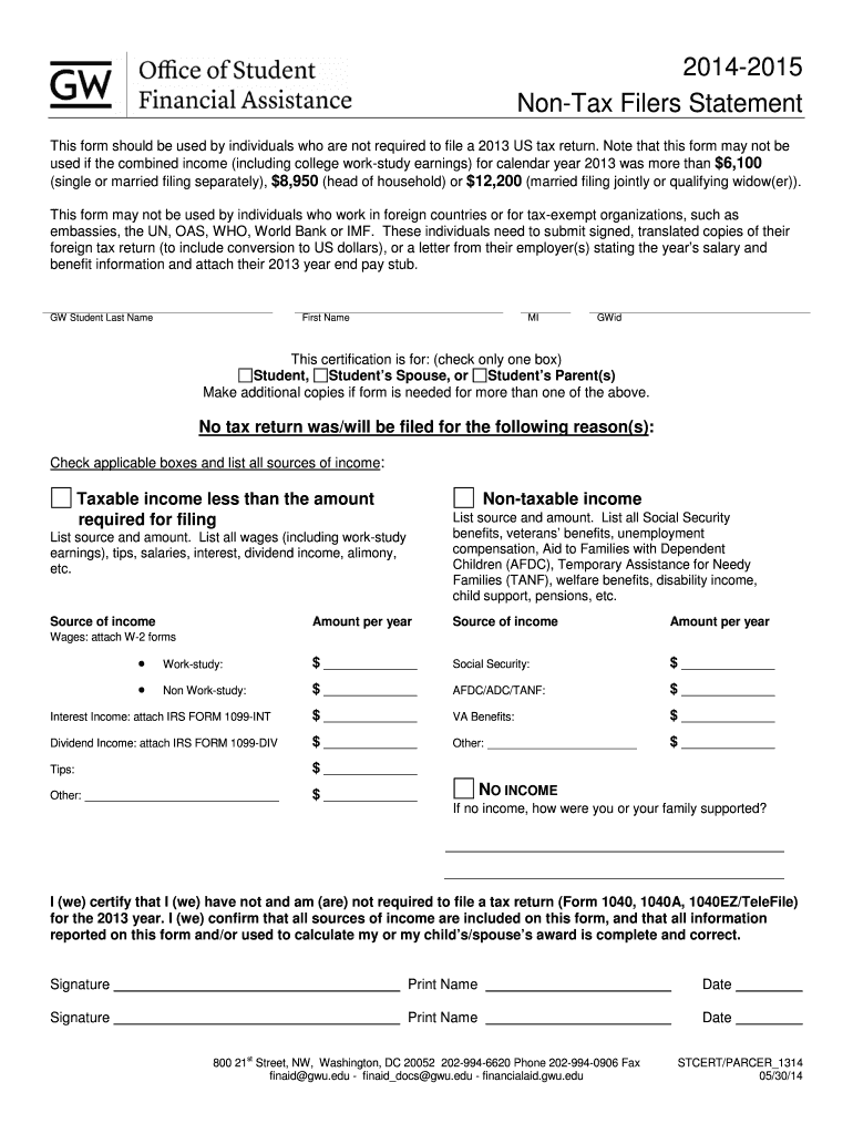 Get the free Non Tax-Filers Statement PDF - Office of Student Financial bb