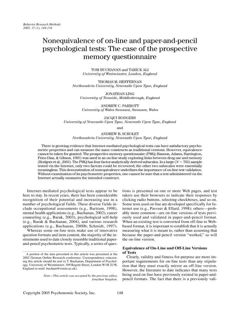 2005, 37 (1), 148154Nonequivalence of online and paperandpencil