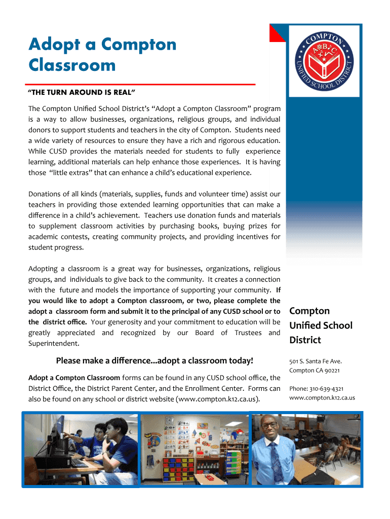 The Compton Unified School Districts Adopt a Compton Classroom program