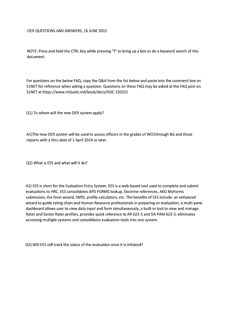 OR QUESTIONS AND ANSWERS, 16 JUNE 2015NOTE: Press and hold the CTRL key while pressing f to bring up a box to do a keyword search of this document. For questions on the below FAQ, copy the Q&A from